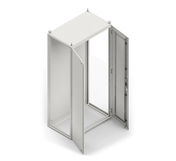 Стандартная комплектация - Каркас; - Дверь с поворотной ручкой, тягами и съемным усилением; - Дверь с двумя замками на четверть оборота и съемным усилением; - Крыша съемная на винтах; - Задняя панель съемная на винтах; - Рым болты М12 (4 шт.); - Заглушки отверстий для соединения шкафов (12 шт.).